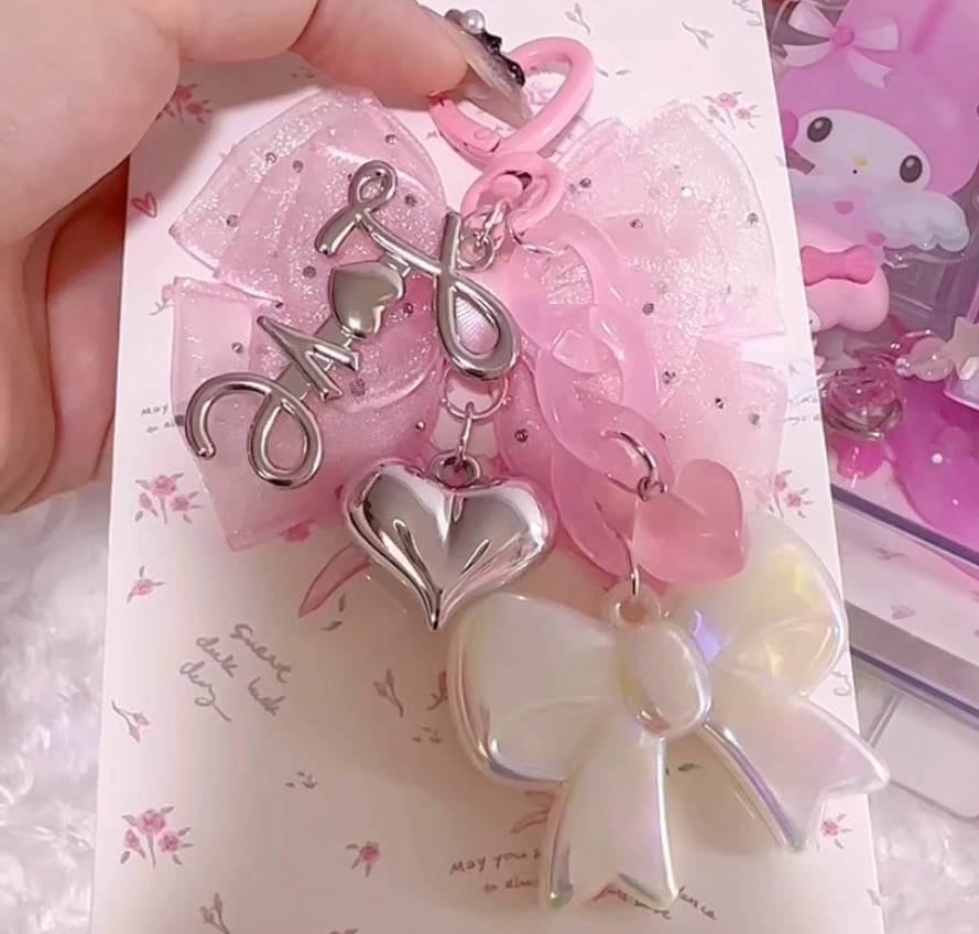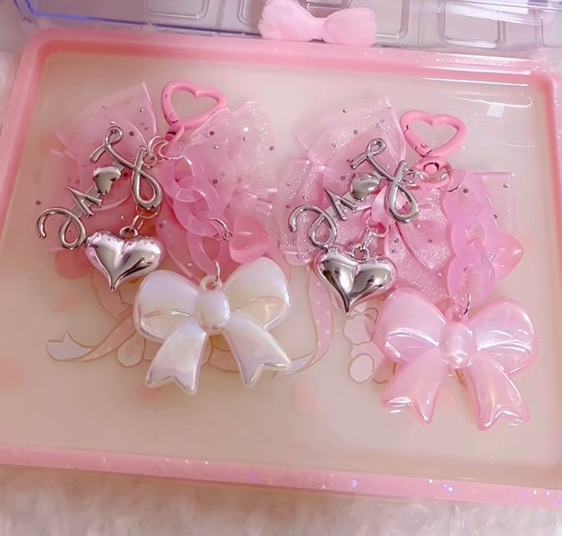 pink ribbon love キーホルダー
